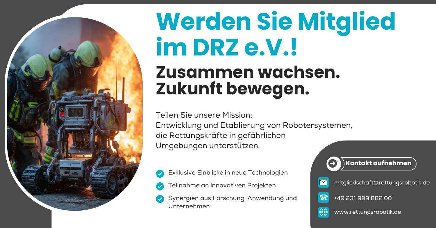 Das Deutsche Rettungsrobotik-Zentrum e.V. wird getragen von einem starken, interdisziplinären Netzwerk. Unsere Mitglieder kommen aus allen Bereichen, die für die Entwicklung und den Einsatz robotischer Systeme in der Gefahrenabwehr entscheidend sind: