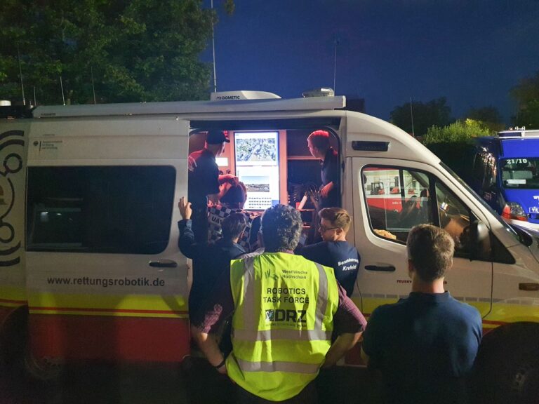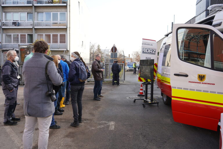 Ein Bodenroboter öffnete in einem Chemiewerk in Leverkusen ein Ventil an einem Tank mit hochexplosivem Gas – Drohnen lieferten gleichzeitig Lagebilder.